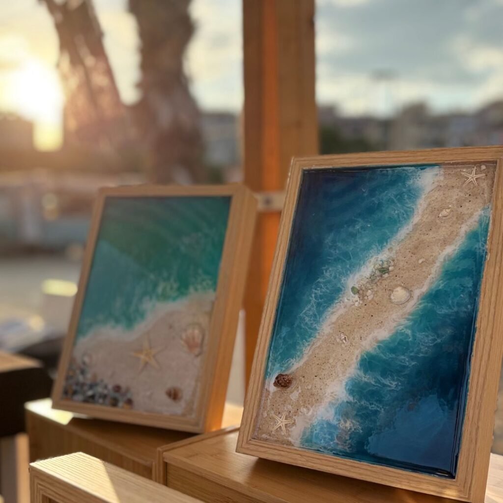 No es un curso, es una experiencia creativa donde durante unas horas desconectas y creas tu propia pieza en resina para llevarla a casa.